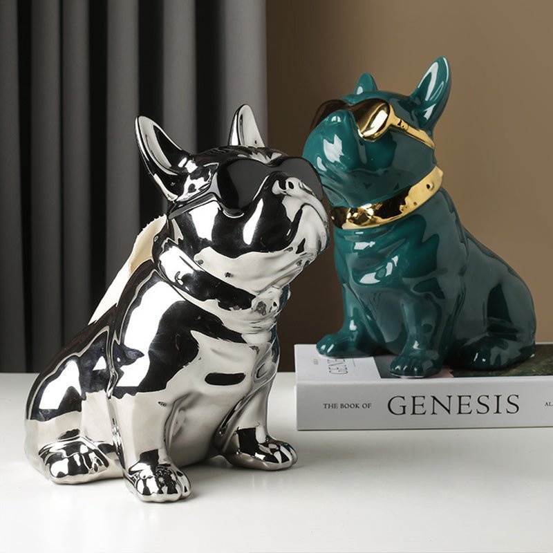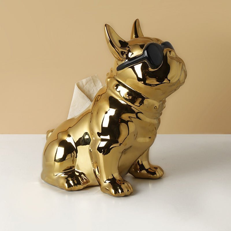 French Bulldog Ceramic Tissue Holder – Silver Plated Modern Décor